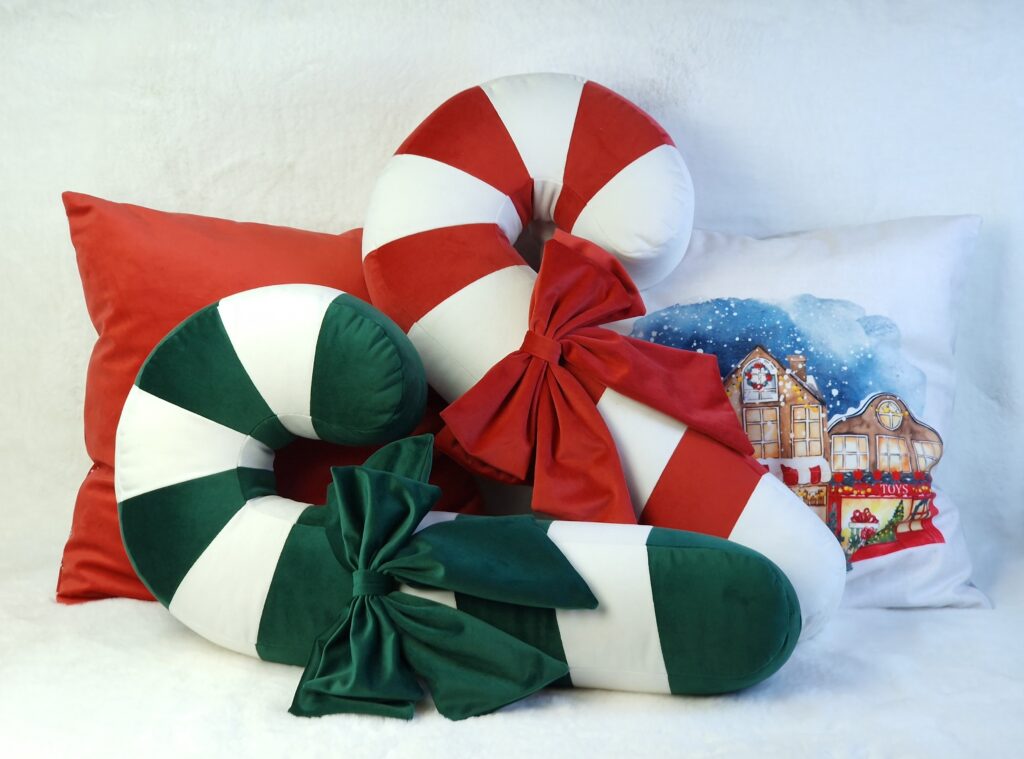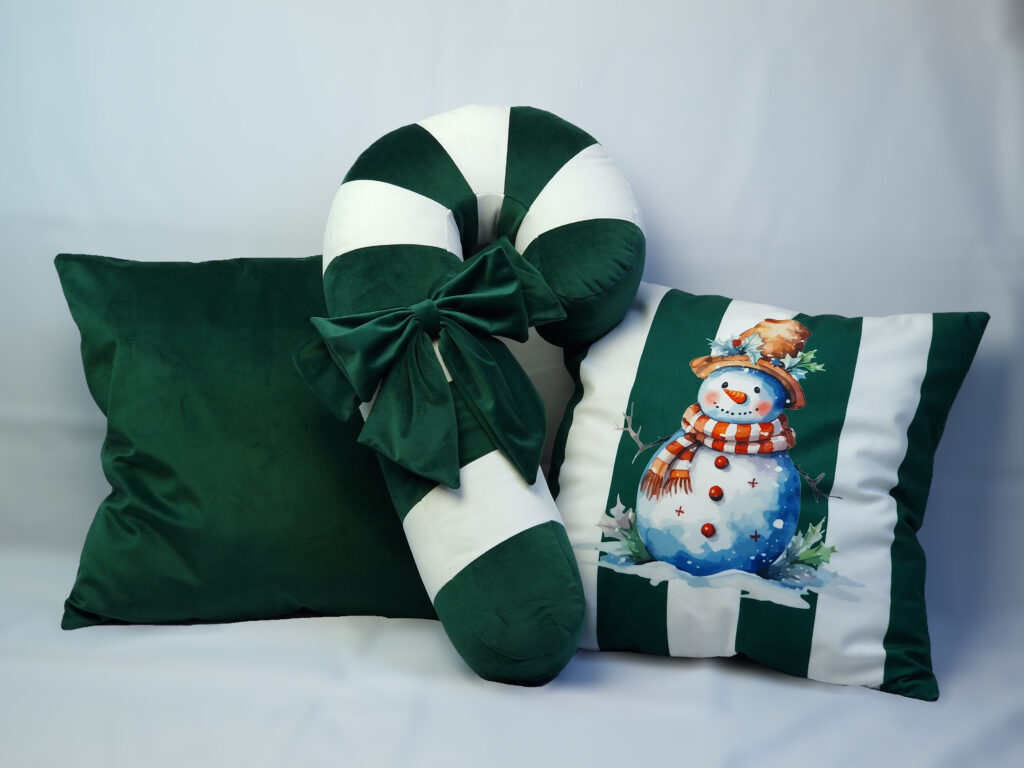 Poduszka świąteczna laska cukrowa, zielono-biała, 60cm