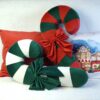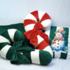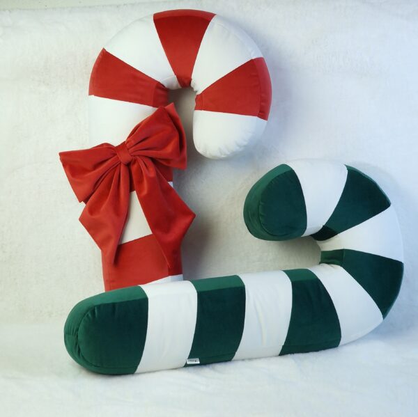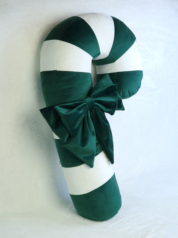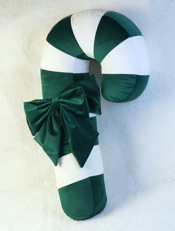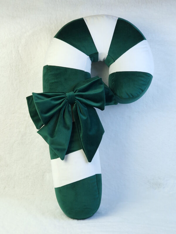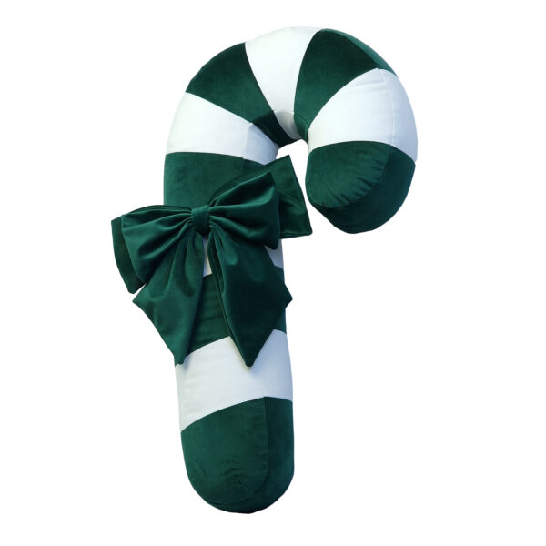 poduszka świąteczna laska cukrowa, zielono-biała z kokardą, 60cm