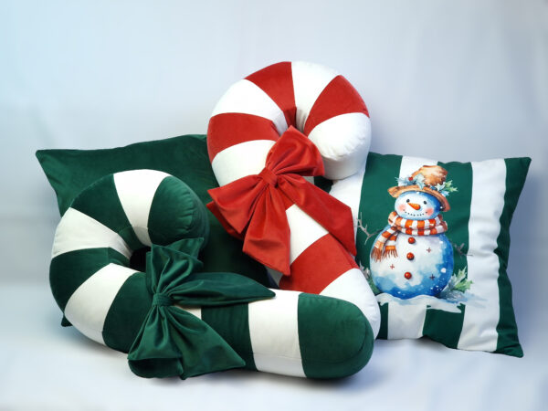 Poduszka świąteczna laska cukrowa, zielono-biała, 60cm