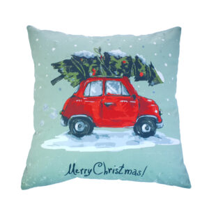 poduszka dekoracyjna świąteczna, 45x45cm, samochód z choinką